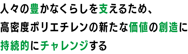 サステナブルな未来に向け高密度ポリエチレンに求められるニーズは変わって来ていますが、豊かなくらしを支える素材という変わらぬ役割が果たせるよう、わたしたちは進化を止めない技術の力でお客様とともにさらなる先へと歩み続けます。