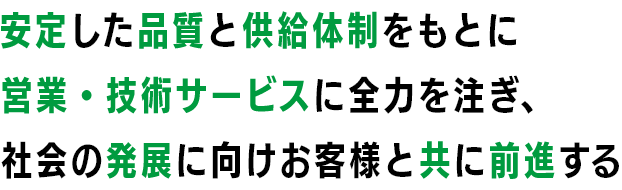 安定した供給体制とそれを支える品質管理、新たな価値を創造する研究開発、そしてこれらをお客様と結びつける営業・技術サービスに製販研三位一体のチームとしてこれからも全力を注いでまいります。